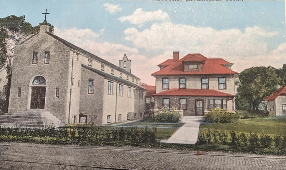 Old St. Catherine of Siena Church and Rectory, Riverside , CT, about 1955.