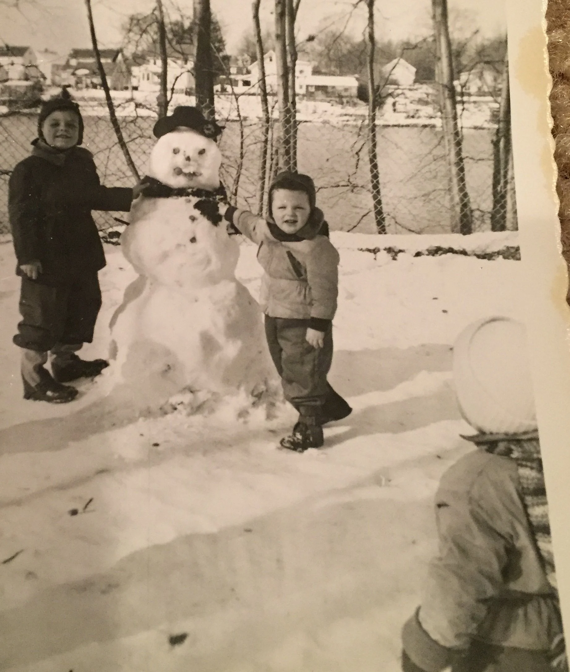 Snow began falling hard as we walked home from school, two days before Christmas. Fat, wet flakes stuck to us like glue. Us kids were sliding on the sidewalk, beside vehicles crawling along the Post Road. Older boys ran onto the highway, grabbing onto the back fenders of slowly moving cars and gliding on their boots like skis. They called it “boot hitching,” but it was way too scary for us fourth graders.
