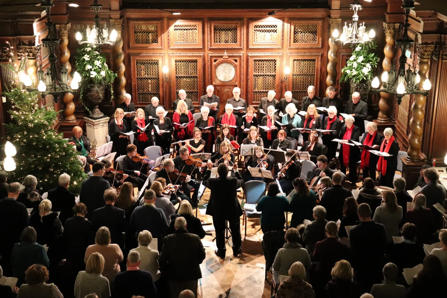 Christmas Eve candlelight service with the choir singing the First Noel and Hark The Herald Angels Sing.